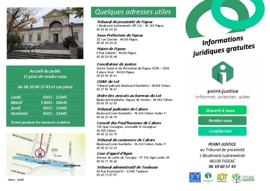 Le point-justice de Figeac propose des informations juridiques gratuites. Il est :